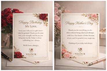Each gift from Velour Gifts comes with a personalized card, allowing you to convey your heartfelt messages. Our service takes care of the details, ensuring that each card reflects your sentiments perfectly. With our automated gifting, you can be confident that your loved ones receive not just beautiful gifts, but also meaningful words that resonate.